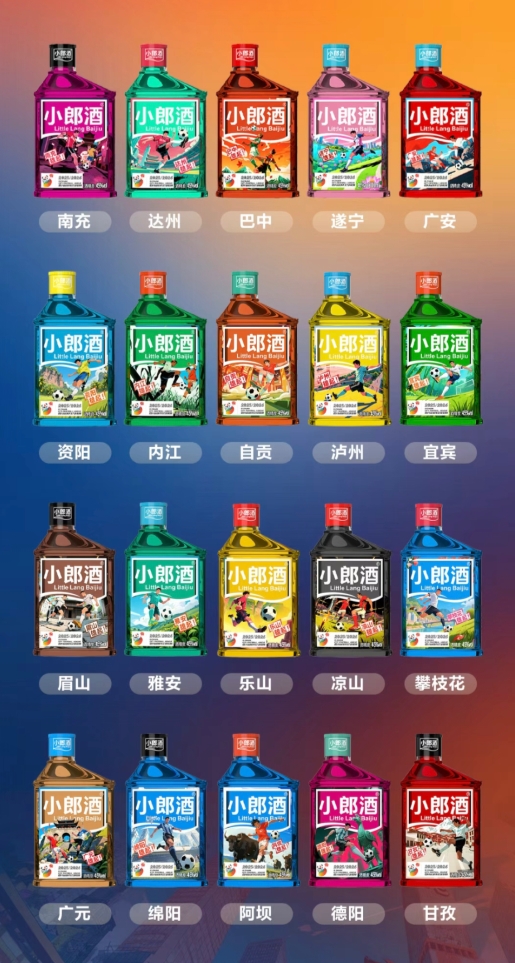 作为2025-2026赛季四川省城市足球联赛的重要合作伙伴,小郎酒此次以“一城一队、一城一款”为核心创意,将四川21座城市的特色符号与文化风物融入产品设计,让每一瓶小郎酒都成为承载城市记忆的“流动名片”。无论是成都的熊猫元素、绵阳的科技印记,还是乐山的美食符号,都通过精致的瓶身设计得以呈现,既展现了四川多元的地域文化,也为消费者提供了兼具收藏价值与饮用体验的选择。
