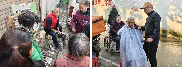 活动现场氛围温馨有序,吸引了众多社区老年人积极参与。在便民服务区,理发师傅手法娴熟、耐心细致,让老人们面貌焕然一新;磨刀师傅专注打磨,一把把钝刀重获锋利,赢得老人连连称赞。义诊区,老师们认真为老人测量血压、解答健康疑问,并给予个性化的建议,让老人在冬日里感受到实实在在的健康关怀。
